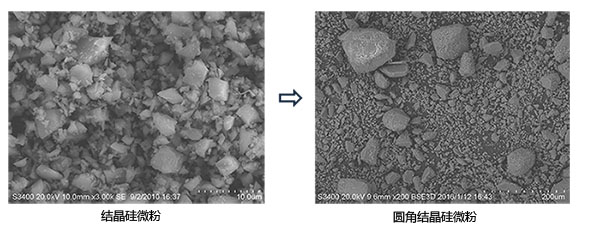 【基本說(shuō)明】:圓角結晶硅微粉是以結晶硅微粉為原料,經(jīng)過(guò)圓角化加工而成的ɑ晶體二氧化硅粉體材料,具有比結晶二氧化硅更好的流動(dòng)性。